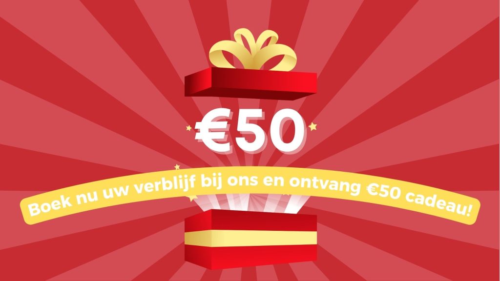 De €50 wordt verrekend in uw reservering. Het bedrag is niet te ontvangen in contanten bijvoorbeeld.